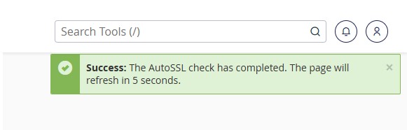 4. Aşağıdaki gibi “Success” başlıklı bir bildirim aldığınızda SSL kurulumunuz tamamlanmış olacaktır.