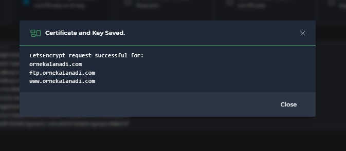4. LetsEncrypt request successful” bildirimini gördüğünüzde SSL kurulumunuz tamamlanmış olacaktır.
