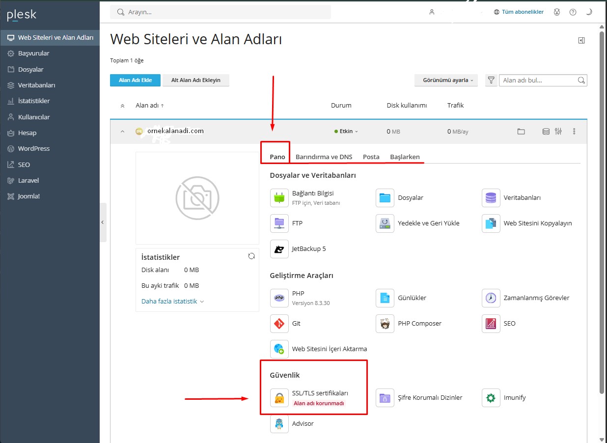 Plesk Panel Üzerinden Free SSL Kurulumu