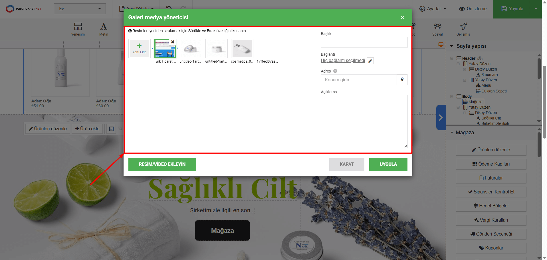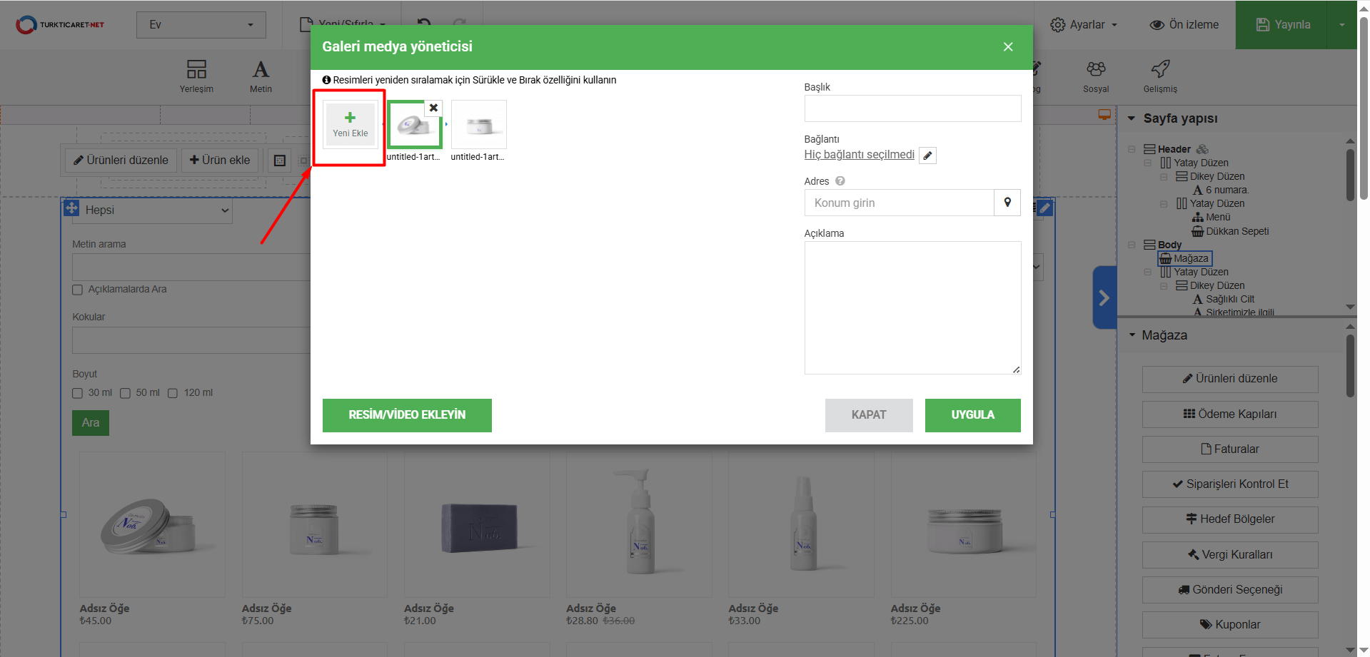 Hazır Site Mağazada “Galeri” Nasıl Kullanılır?