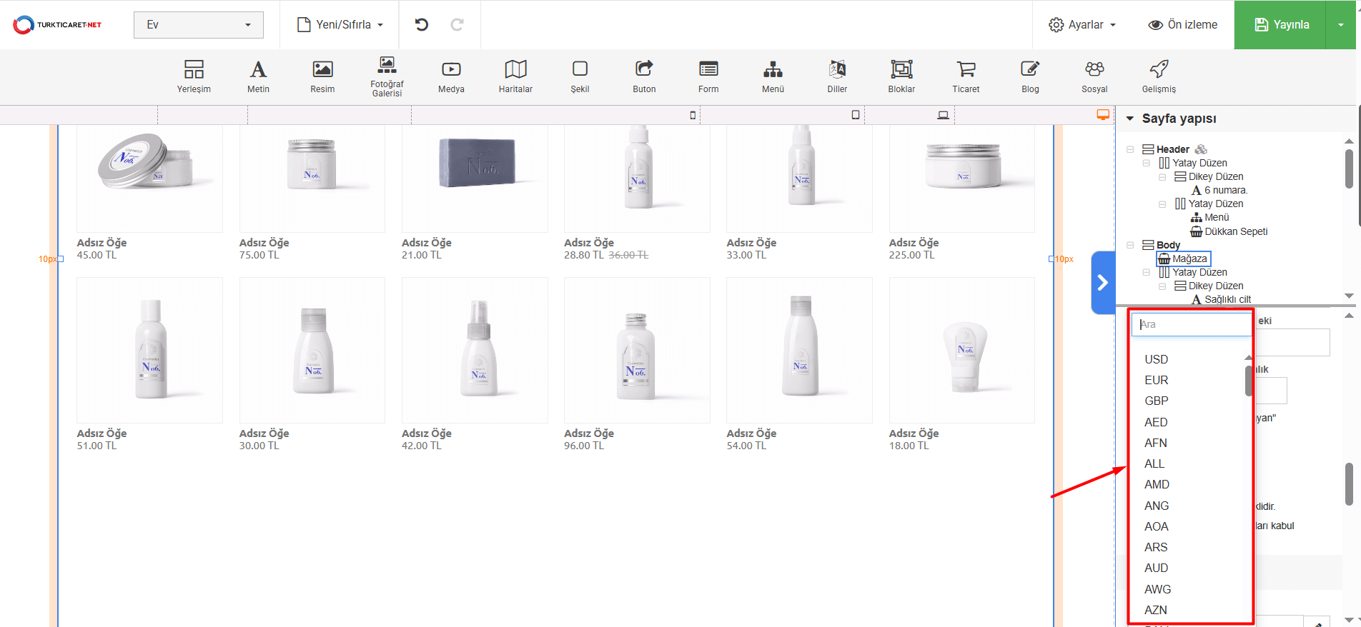 Hazır Site şablonlarında E-ticaret ve Mağaza modülü işlemleriyle ilgili bilgilere ulaşabileceğiniz bölümdür.