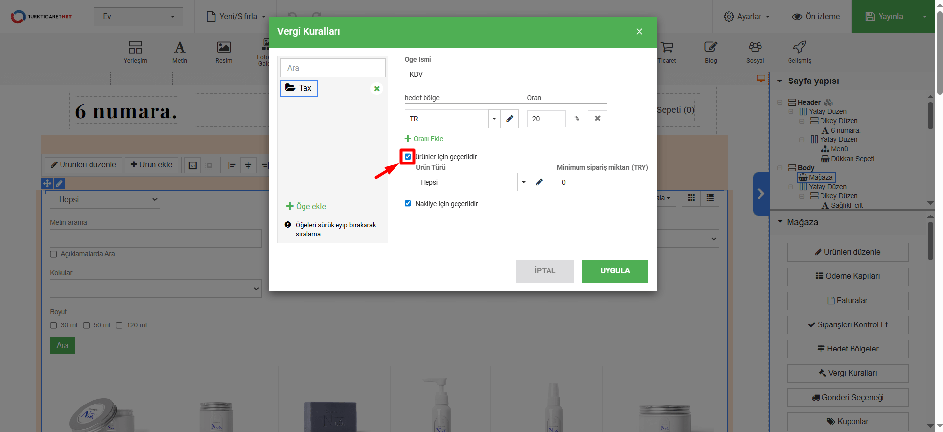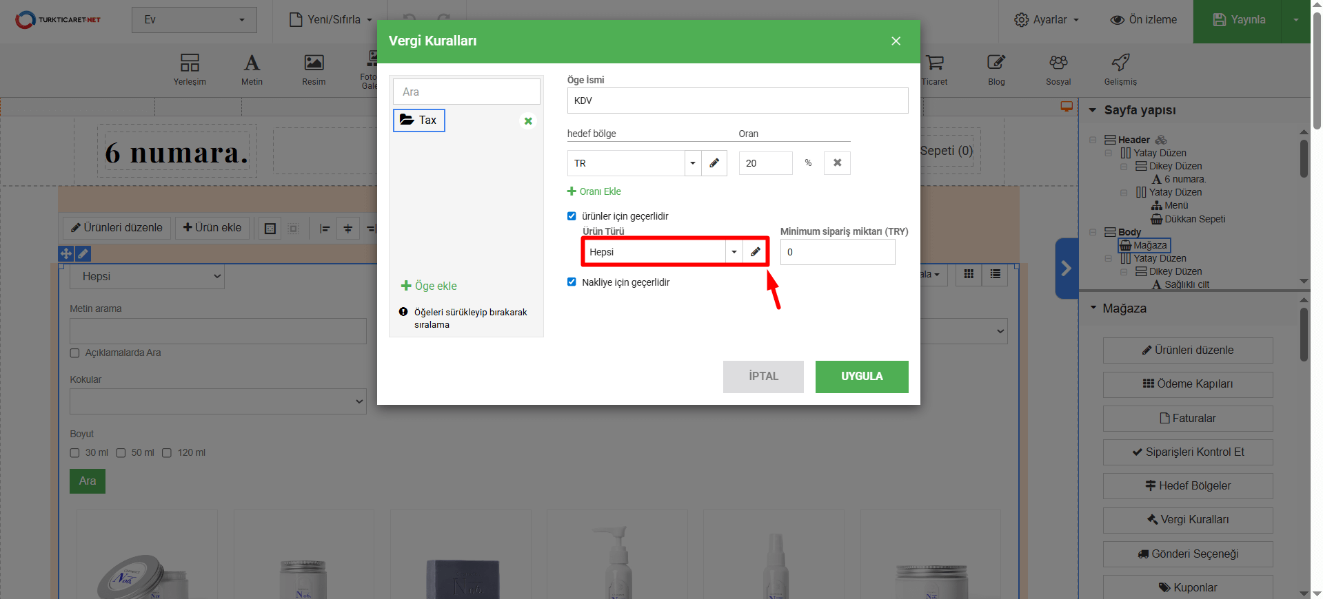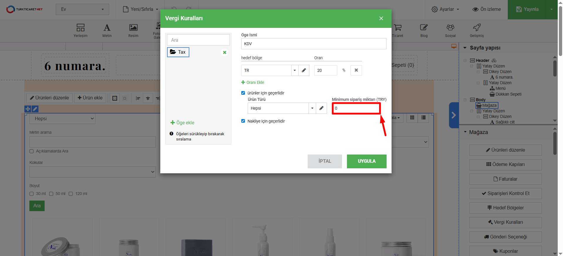Hazır Site şablonlarında E-ticaret ve Mağaza modülü işlemleriyle ilgili bilgilere ulaşabileceğiniz bölümdür.