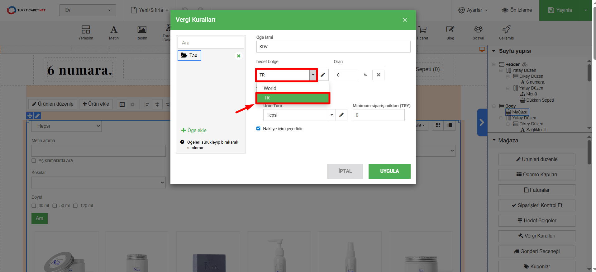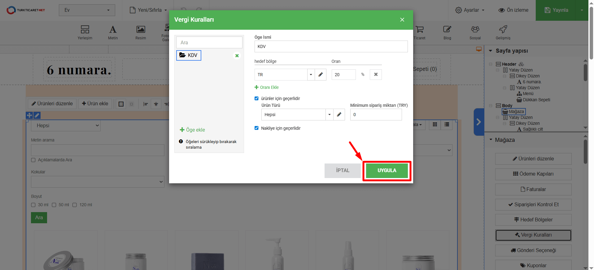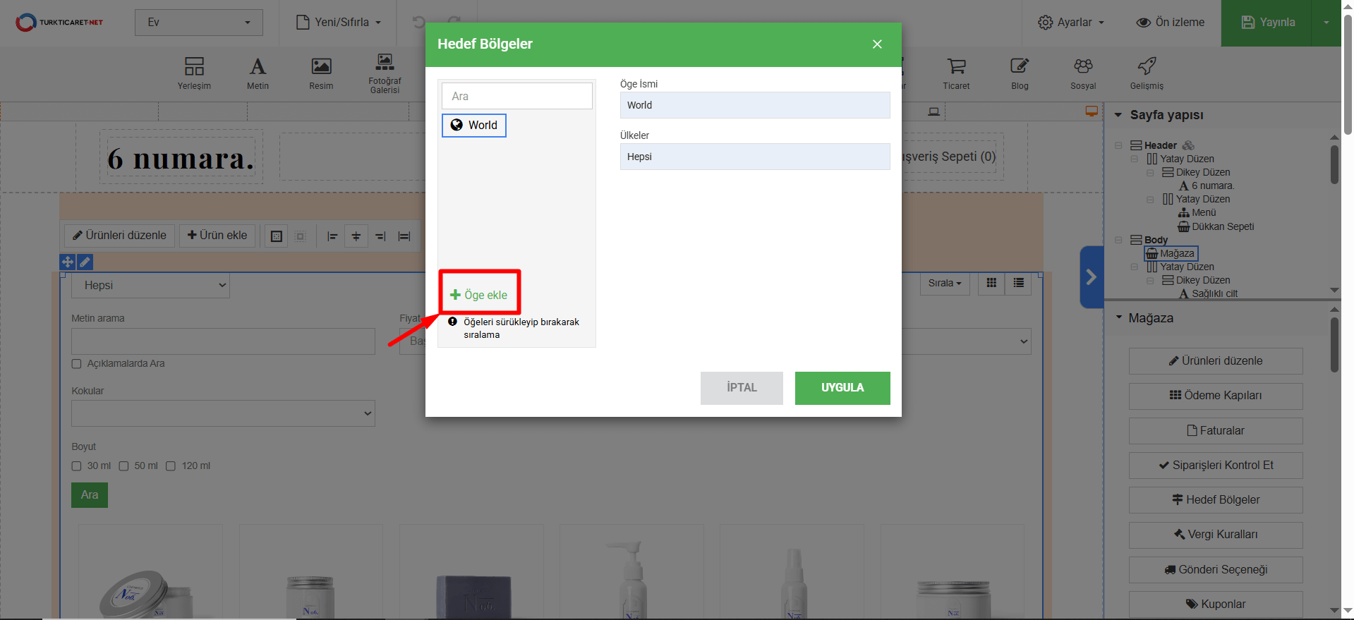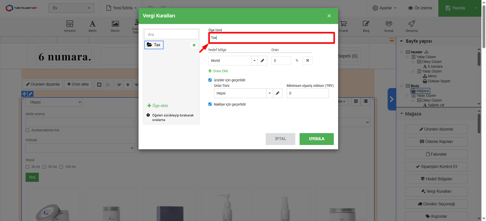 Hazır Site şablonlarında E-ticaret ve Mağaza modülü işlemleriyle ilgili bilgilere ulaşabileceğiniz bölümdür.