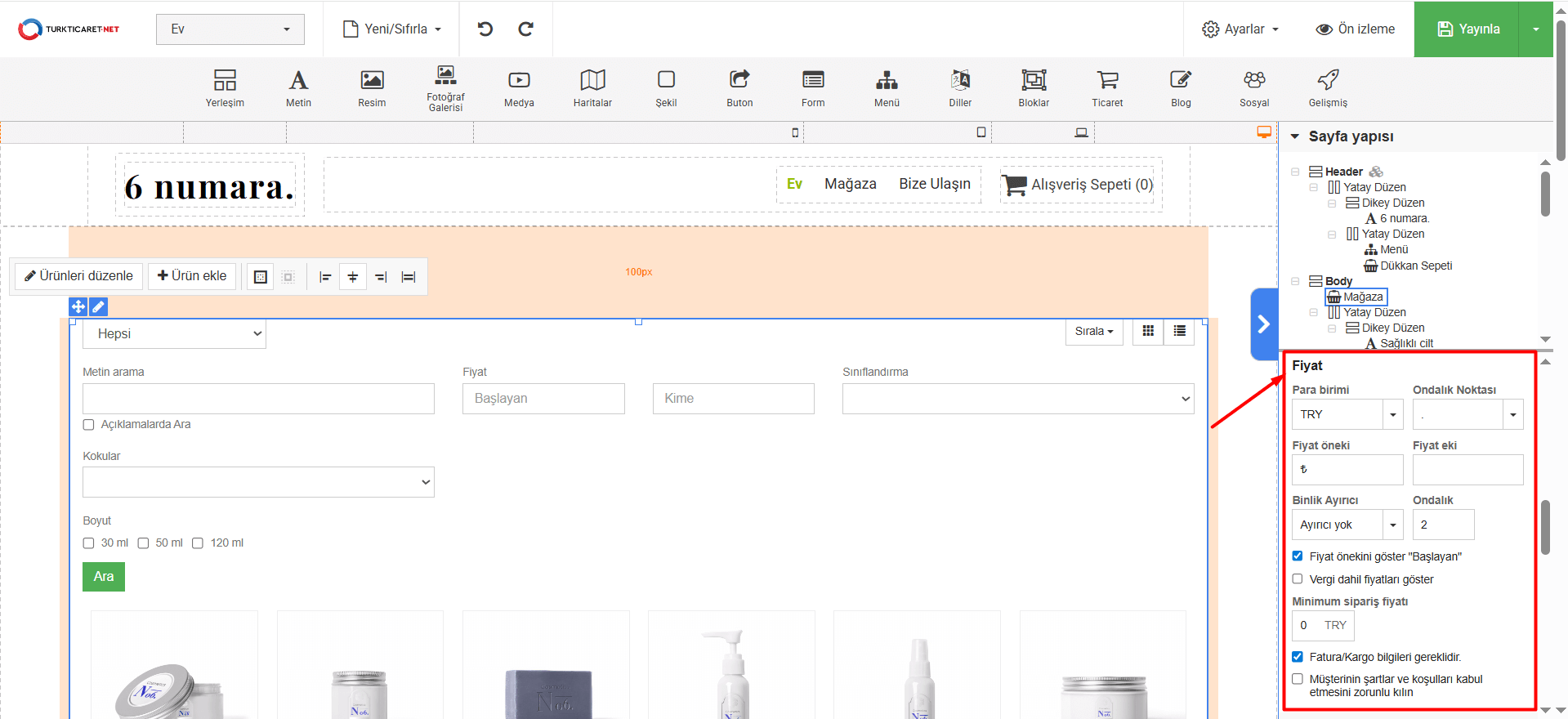 Hazır Site şablonlarında E-ticaret ve Mağaza modülü işlemleriyle ilgili bilgilere ulaşabileceğiniz bölümdür.