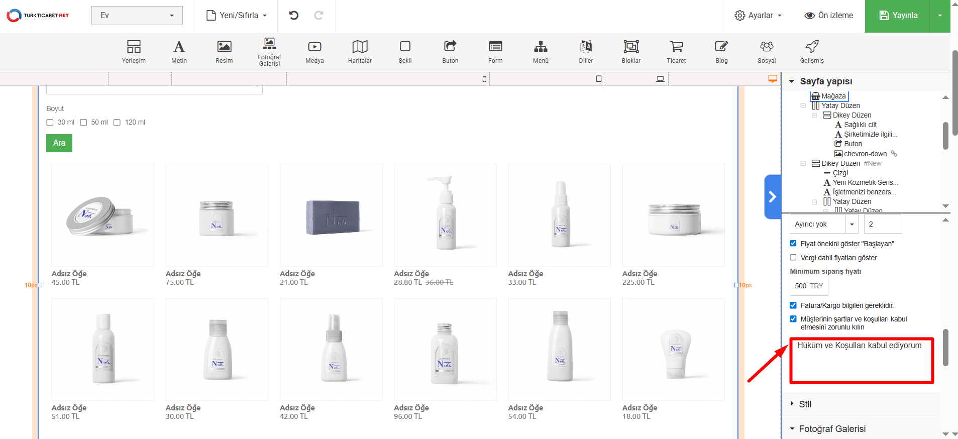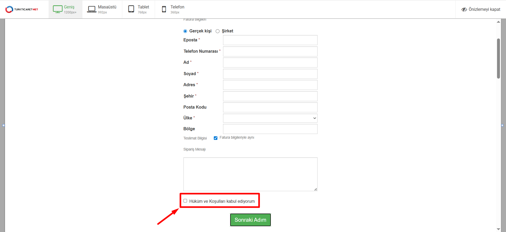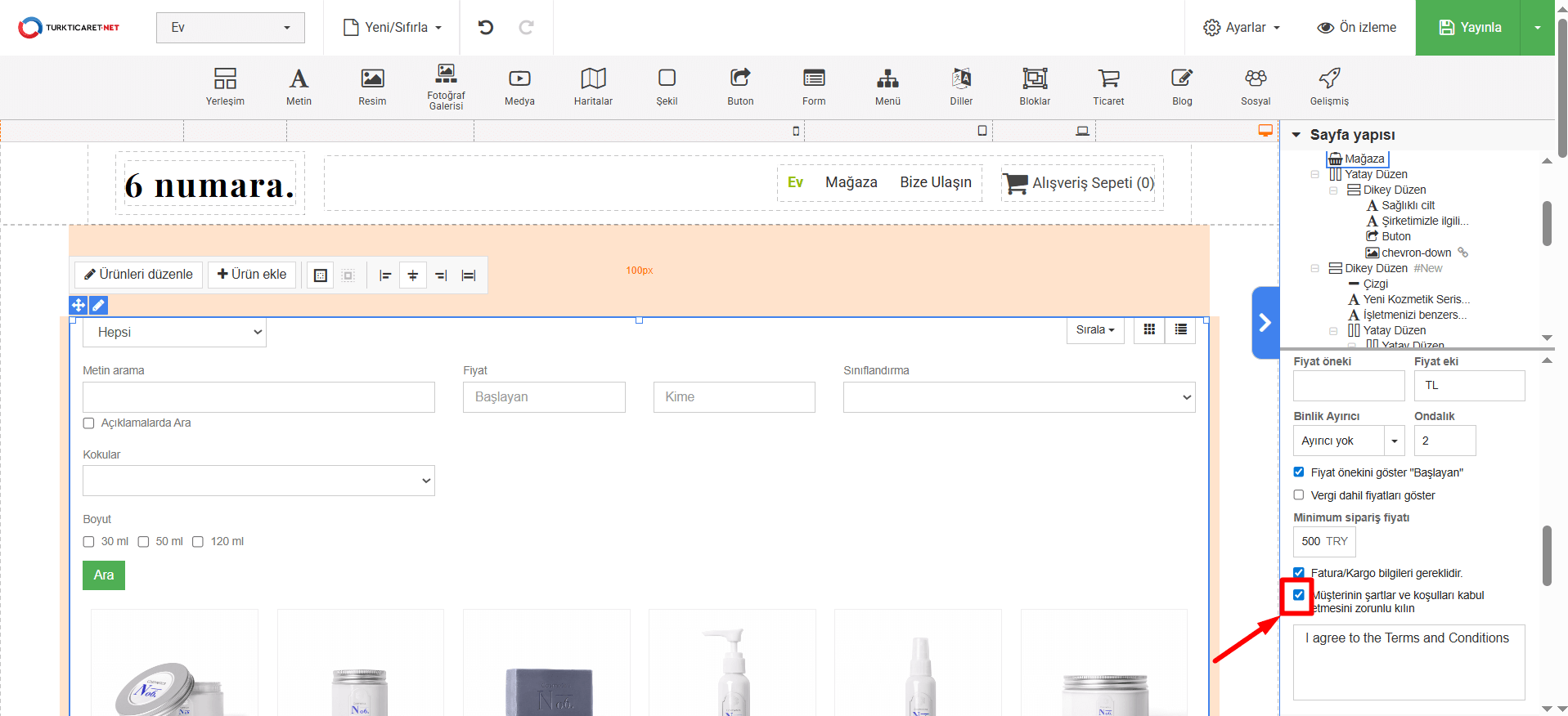 Web sitenizden alışveriş yapan müşterilerinize, siparişi tamamlamadan önce “Şartlar ve Koşullar”ı kabul ettiklerini onaylamaları için bir kutucuk gösterebilirsiniz. Aşağıdaki adımları takip ederek bu özelliği etkinleştirebilirsiniz.