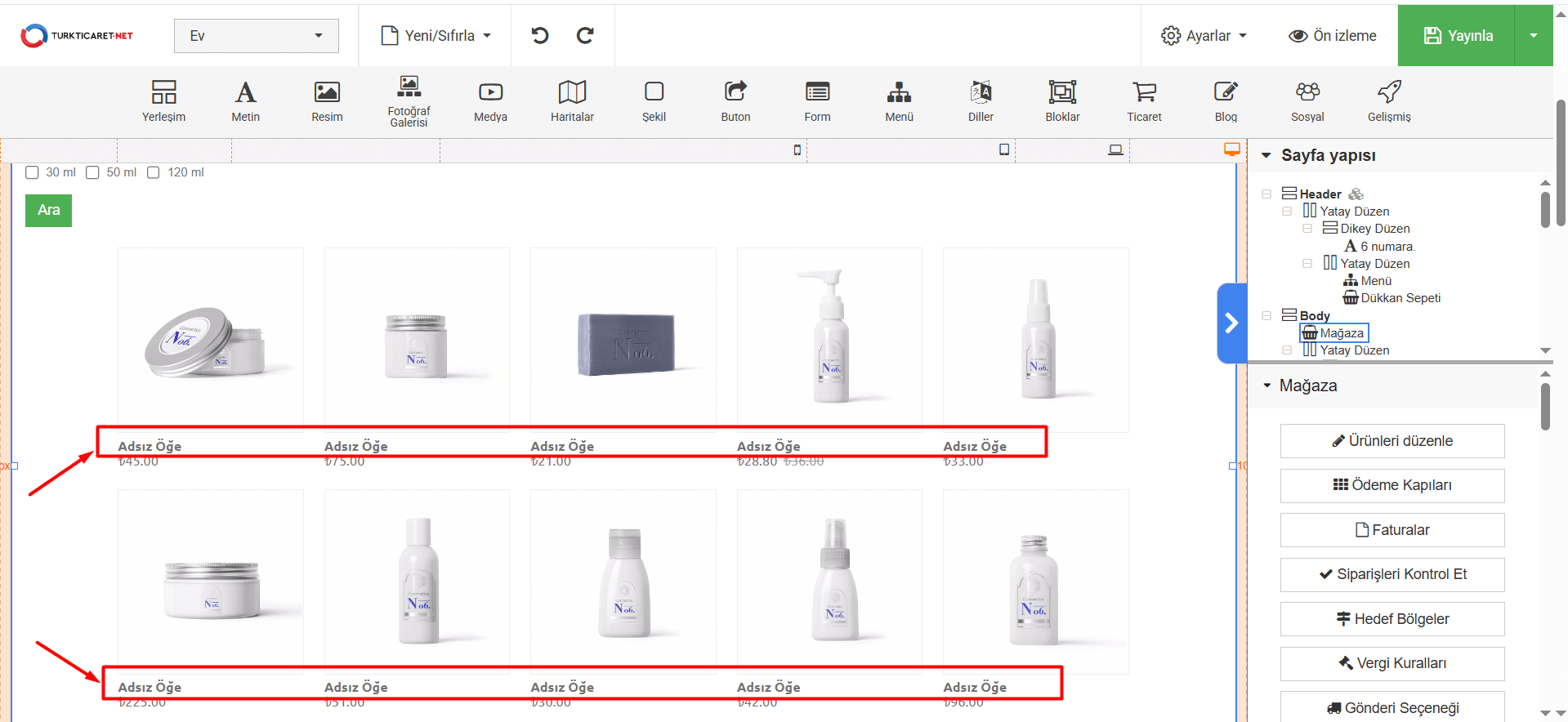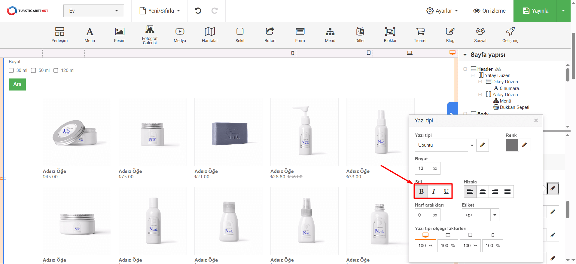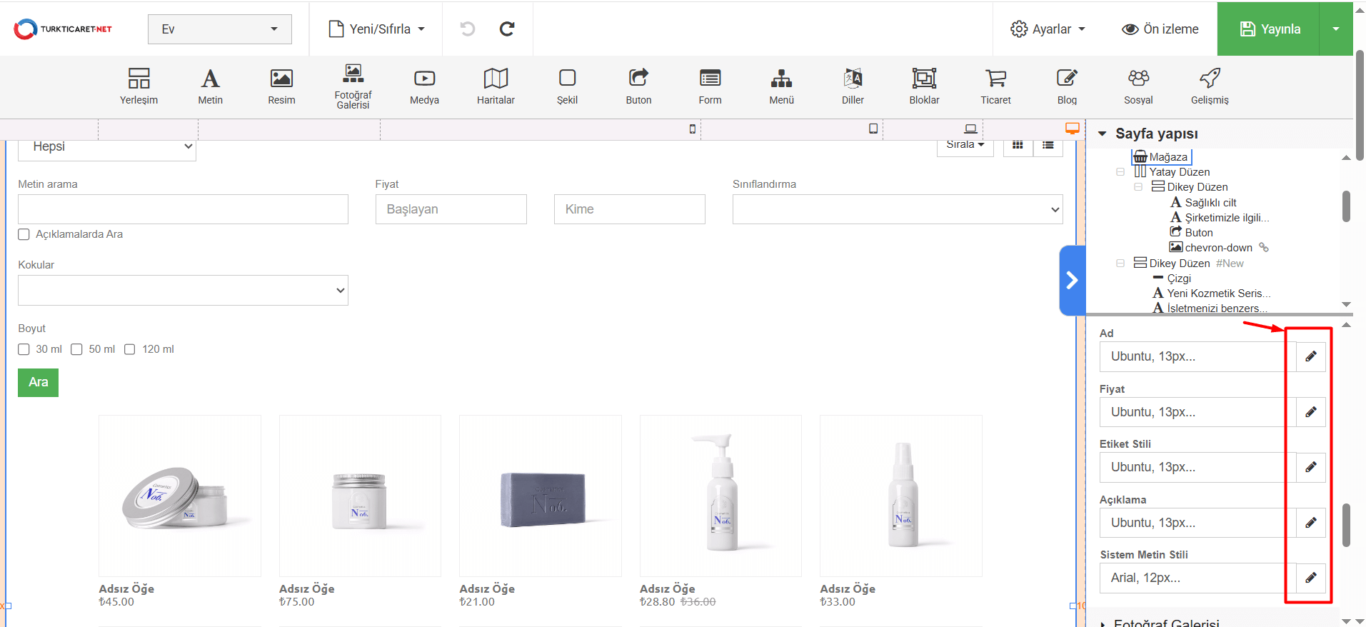 - “Ad” bölümünden ürün adı ile ilgili stil düzenlemesi yapabilirsiniz.