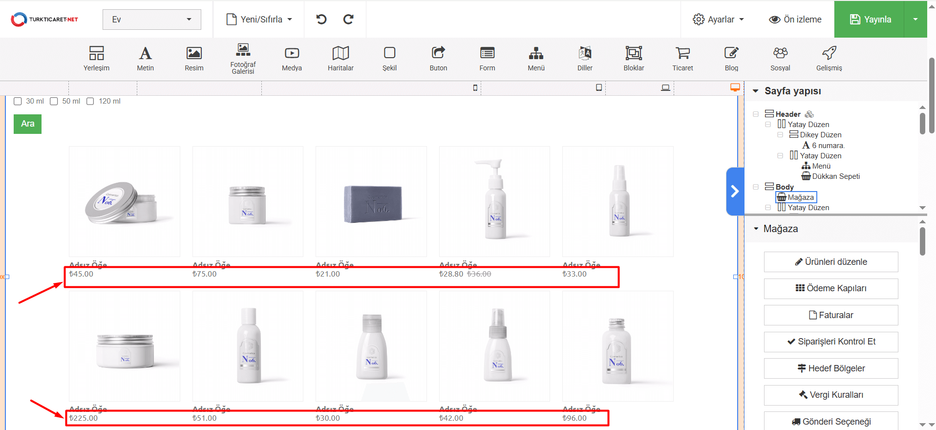 - “Fiyat” bölümünden ürün fiyatının stili ile ilgili düzenleme yapabilirsiniz.