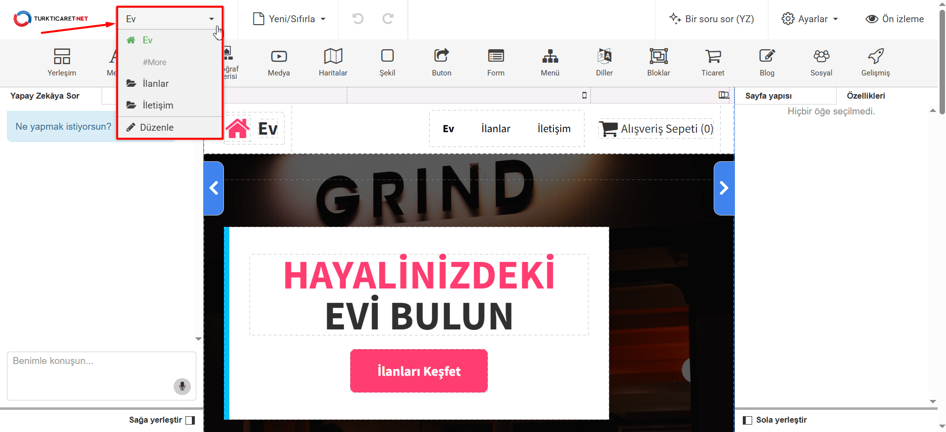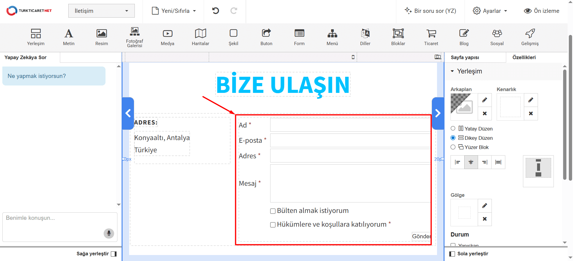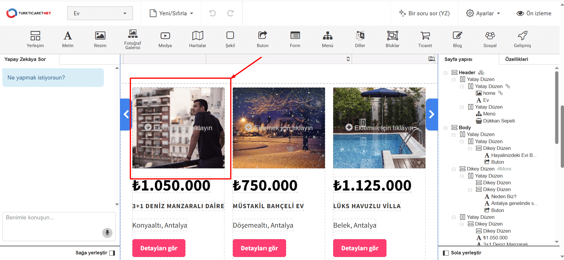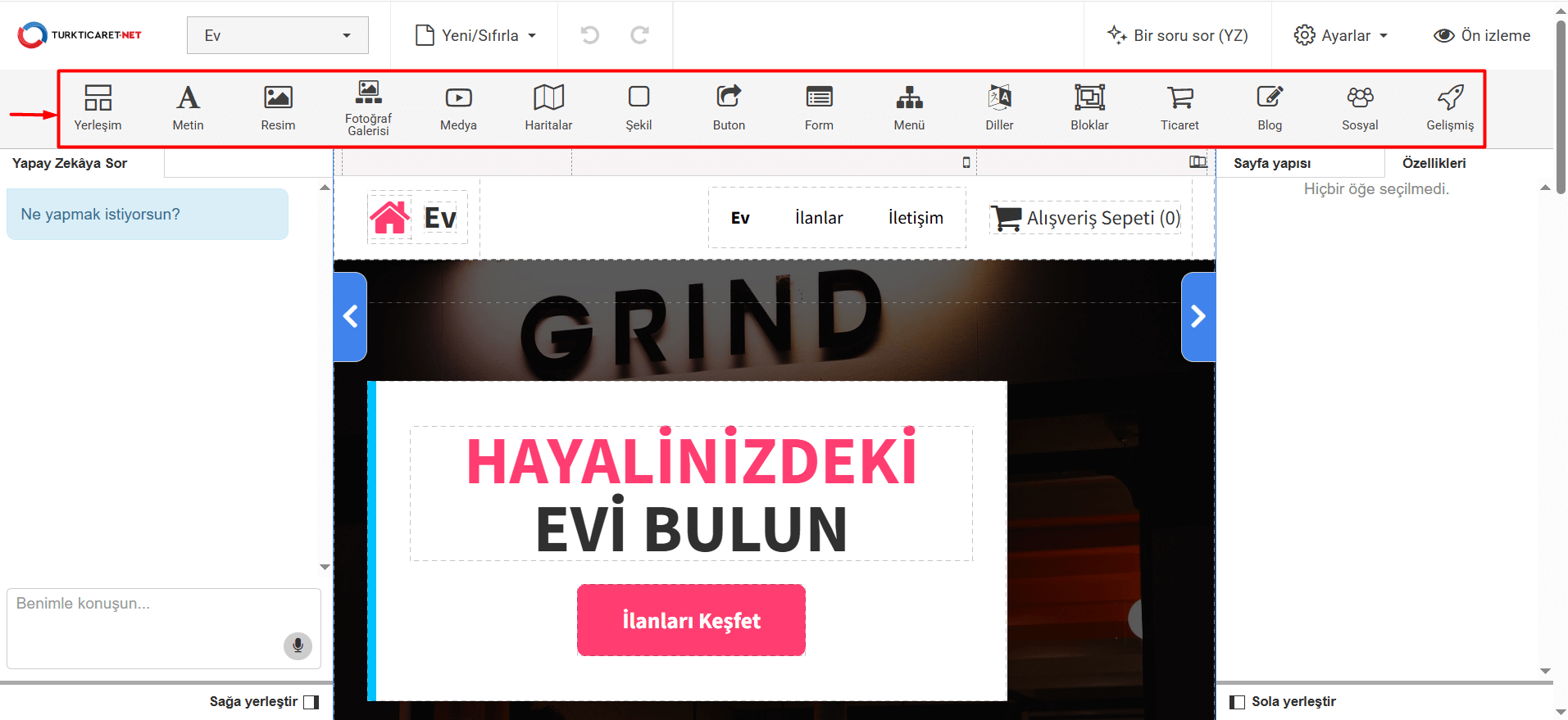 Önemli Bilgi: Yapay Zeka özelliğini yalnızca Hazır Site Business paketlerinde kullanabilirsiniz. Diğer web site ürünlerinde Yapay Zeka modülü bulunmamaktadır.