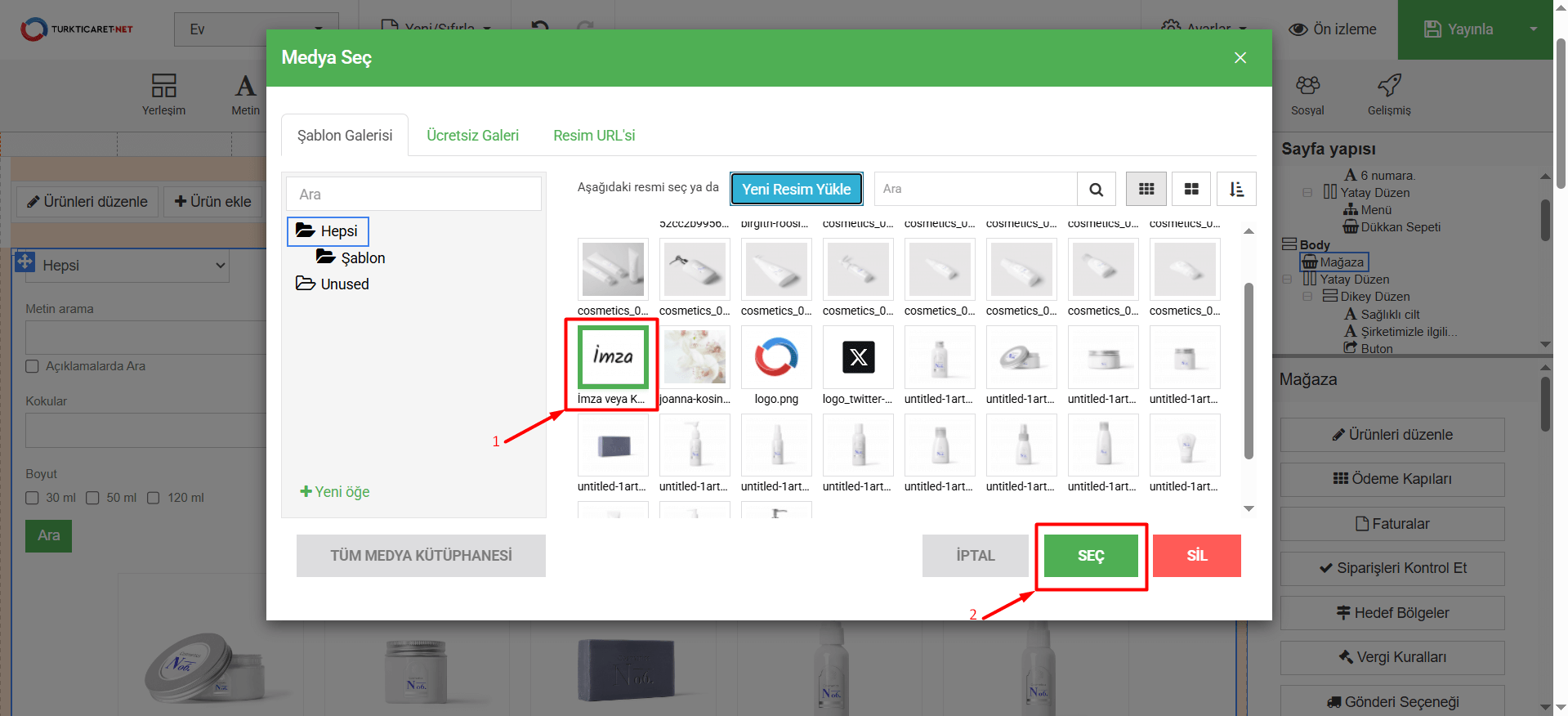 • Görsel yüklendikten sonra faturaya eklenmesi için “Seç” butonuna tıklayın.