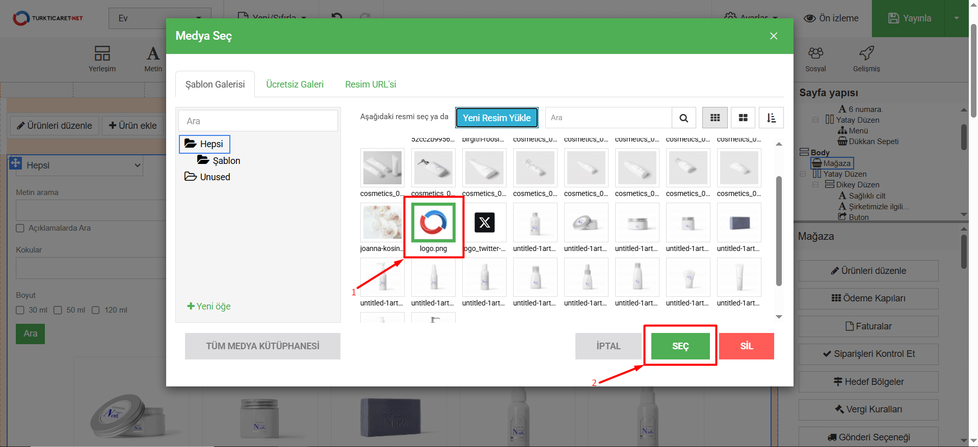 • Logo yüklendikten sonra faturaya eklenmesi için “Seç” butonuna tıklayın.