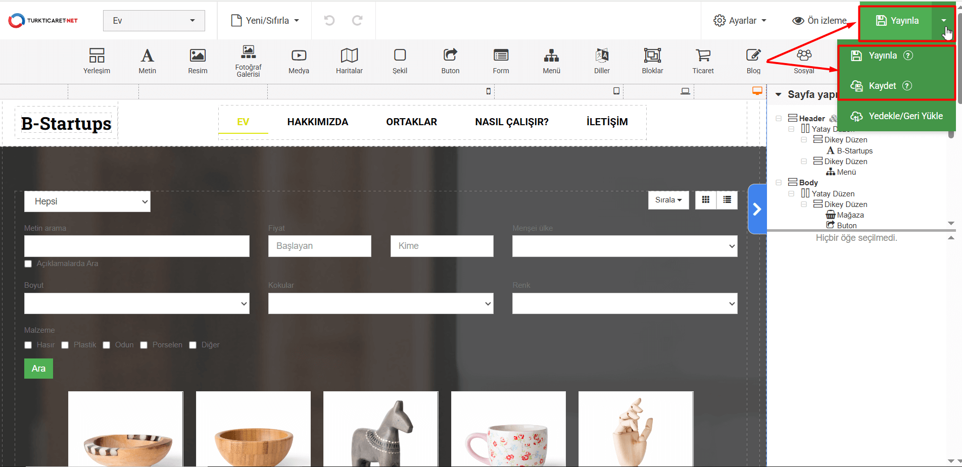 Hazır Web Site şablonlarında E-ticaret ve Mağaza modülü işlemleriyle ilgili detaylı bilgiye ulaşabileceğiniz bölümdür.