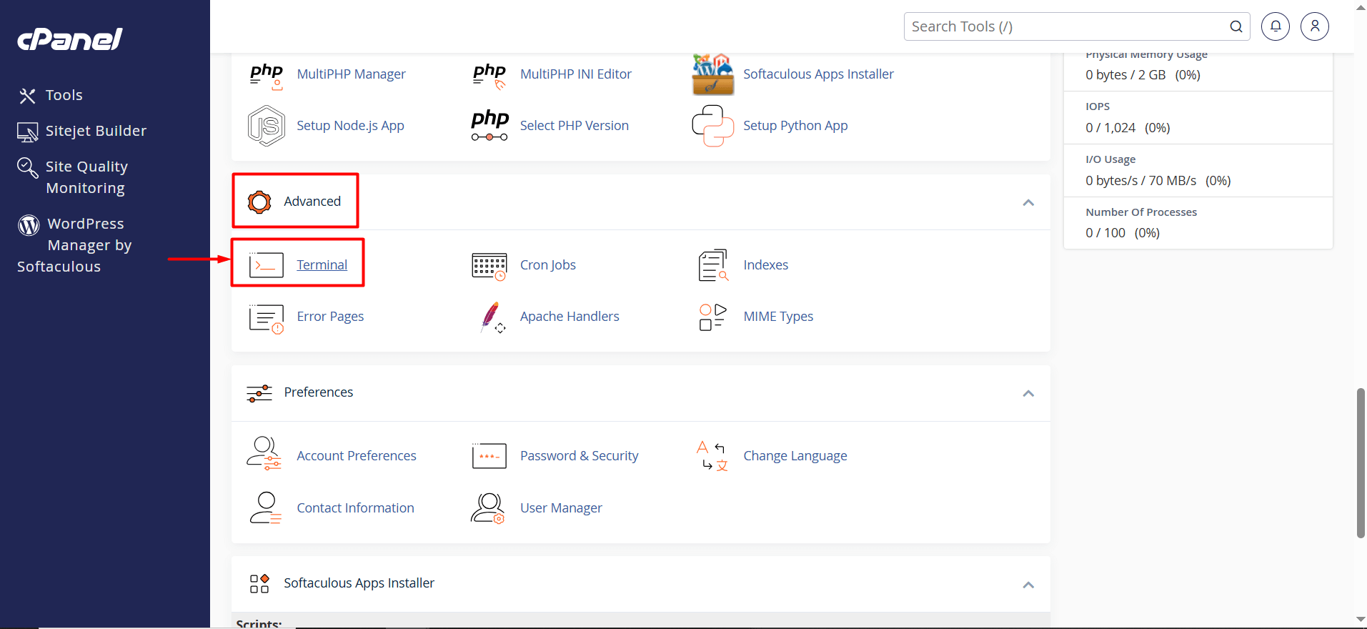 Ancak her hosting türünde terminal erişimi mevcut değildir. Turkticaret.Net üzerinden aldığınız hosting paketinde terminal erişimi sadece Python/Nodejs Hosting paneli içerisinde aktif olarak sunulmaktadır. Eğer hosting paketiniz Python/Nodejs panel değil ise panel değişikliği yapabilirsiniz. Panel değişikliği hakkında daha fazla bilgiye ihtiyacınız varsa “Hosting Panelimi Nasıl Değiştirebilirim?” başlıklı makalemize göz atabilirsiniz.