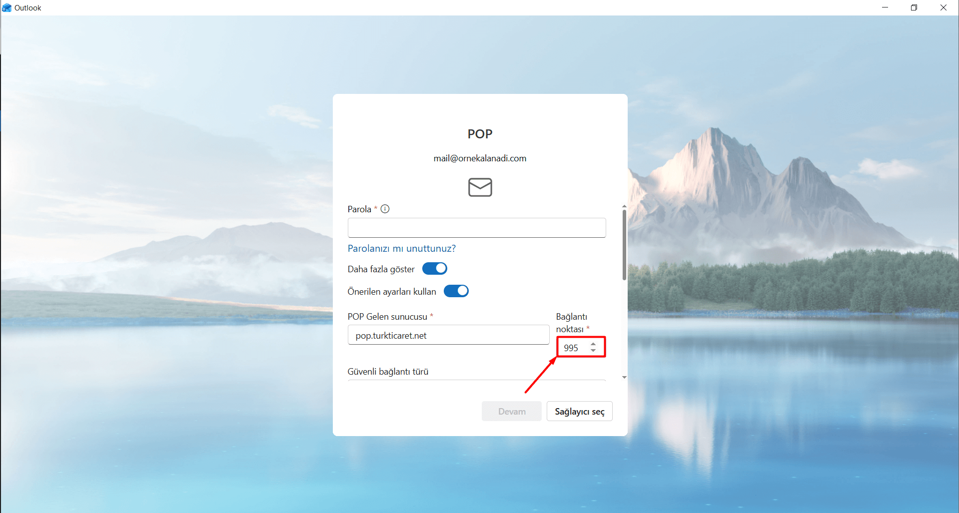 New Outlook Mail kurulumuna başlamadan önce e-posta adresinizin ve şifrenizin doğruluğundan emin olmalısınız. Webmail üzerinden mail hesap bilgileriniz ile oturum açmayı deneyerek şifrenizin doğruluğunu teyit edebilirsiniz. Şifrenizi teyit ettikten sonra Turkticaret.Net‘te çalışan kurumsal e-posta hesabınızı New Outlook’a POP olarak eklemek istiyorsanız aşağıdaki adımları takip edebilirsiniz.
