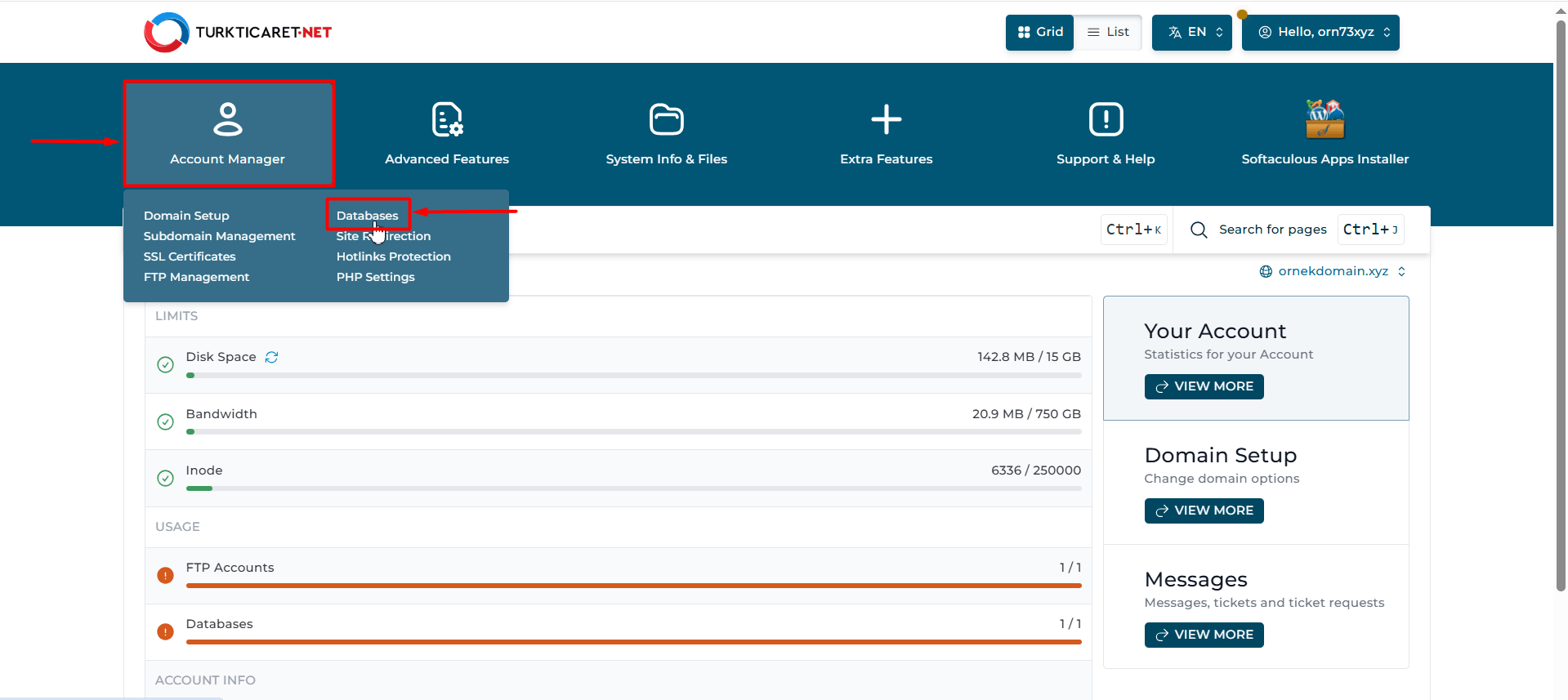 Turkticaret.Net Hosting hizmeti, web sitenizin barındırma ihtiyaçlarına yönelik hızlı, güvenilir ve kullanıcı dostu çözümler sunar. Hosting işlemlerinizi yönetmek için ihtiyaç duyduğunuz bilgilere bu bölümden ulaşabilirsiniz.