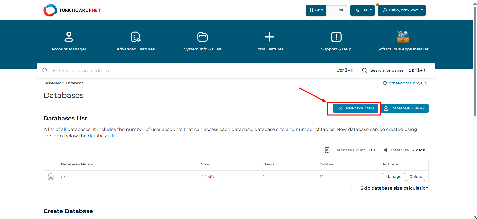 Eğer siz de phpMyAdmin arayüzüne ulaşmak ve veritabanı üzerinde düzenlemeler yapmak istiyorsanız aşağıdaki adımları inceleyerek kullandığınız hosting panel türüne göre phpMyAdmin arayüzüne bağlantı kurabilirsiniz.